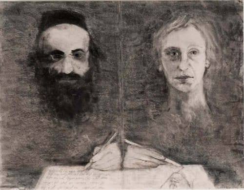 הציירת והחסיד, 2008, פחם על נייר, 50X 65 ס"מ