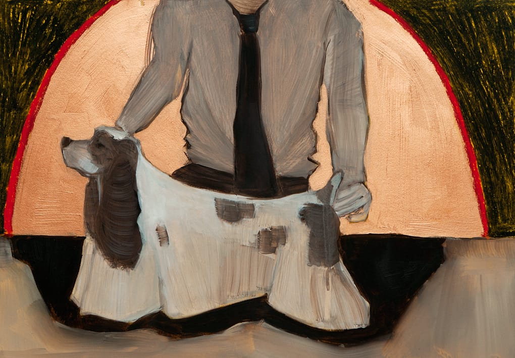יערה אורן, ספנייל ובעליו, 2012, שמן אקריליק ופנדה על נייר