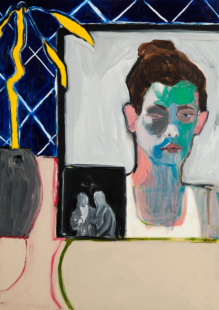 יערה אורן, “פורטרט עצמי בבית חדש”, 2013, שמן על נייר