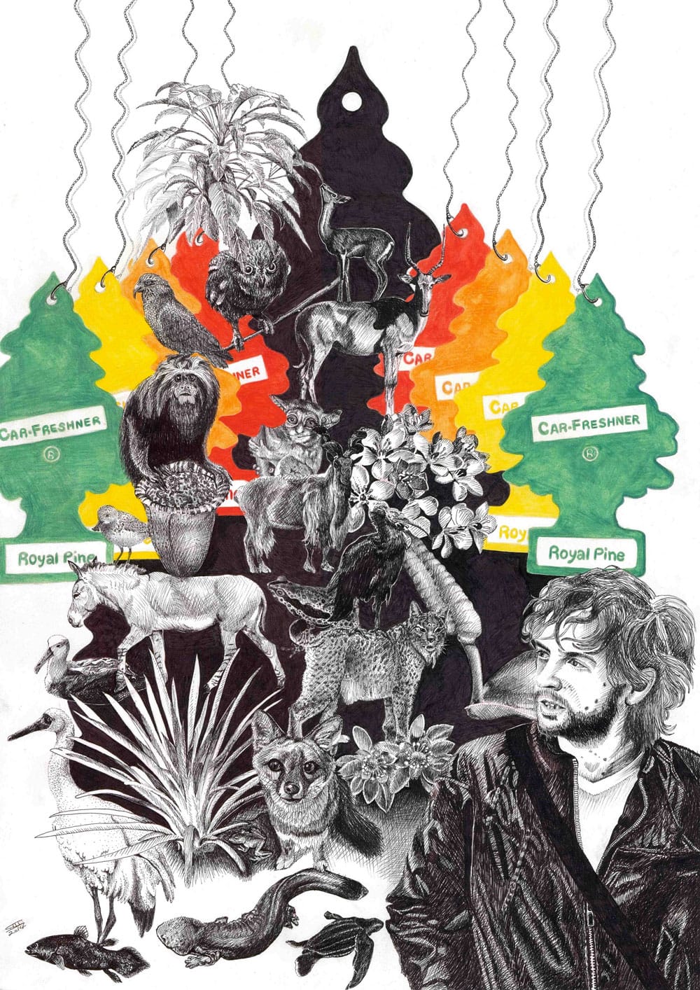 אבישי, 2014, דיו ועפרונות צבעוניים על נייר, 60X42 ס”מ
