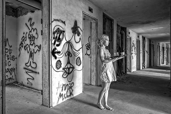מצאנו מלון נטוש, והחלטנו לעבור להתגורר בו. יחד עם זכרונותינו על אמנות קלאסית שכמעט נשכחה, יחד עם החלומות והשאיפות שלנו ורוחות הרפאים שלהם. האשליה של גרמי המדרגות כמו בציורים של אֶשֶר, המזבח השמימי של ה”סגרדה פמיליה” מכוסה ציורי גרפיטי ססגוניים ואינסופיים, הפרספקטיבה הבלתי נמנעת של המסדרונות הארוכים, מבוך העמודים המשתנה ללא הרף ושלוש קומות של משחקי אור וצל – כל זה דחף אותנו לנסות ולהתבונן בעצמנו שוב, לשאוף להעביר את הדמיונות והבחירות שלנו אל הדו-מימד של הצילום. המקום המוזר הזה נמצא בגבול בין שני עולמות: הנראה והנסתר. שם נפגשים קלות הדעת עם הדאגה, הצחוק עם הכמיהה והמציאות עם כל מה שעוד לא התרחש וטמון בעומק העמקים. באם הצופה יראה בתמונות אלה הבהובים והשתקפויות של מחשבותיו, תקוותיו ופחדיו, אם הוא לא יחשוש להימצא עם עצמו – אם כך יהיה הדבר, סימן שהצלחנו.